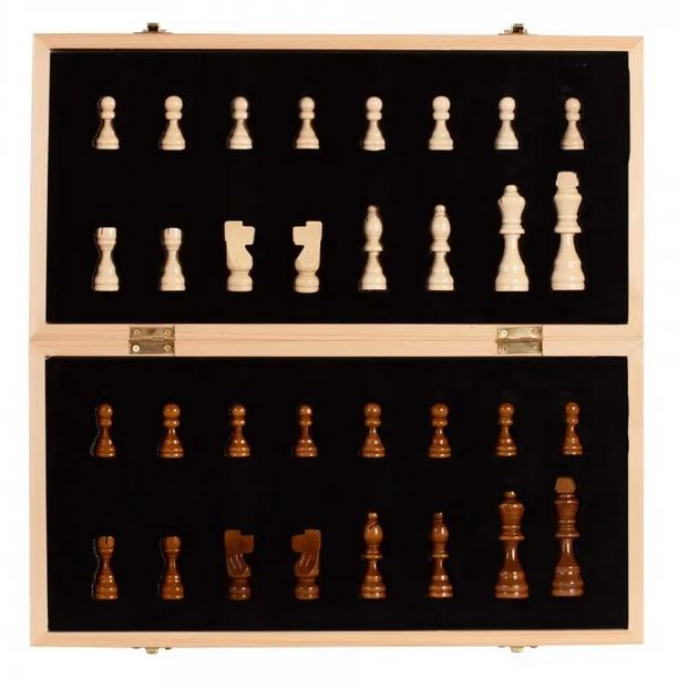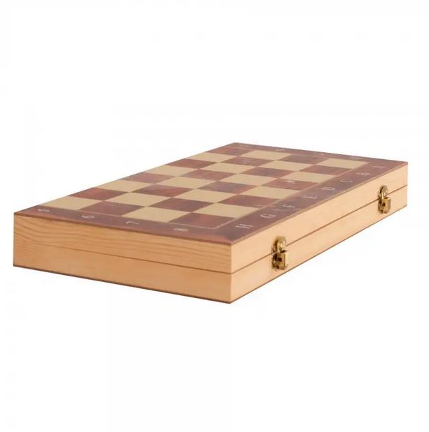 Juego de ajedrez completo con tablero de madera plegable con un acabado de calidad para que adultos y niños puedan practicar este deporte. Incluye casillas perfectamente definidas y notación alfanumérica para facilitar el aprendizaje y el análisis de las partidas. Las fichas también están fabricadas en madera e imantadas y están diseñadas en tono natural y marrón oscuro al igual que las casillas del tablero. Cuenta con sistema plegable con cierre metálico para facilitar su transporte y almacenado. Además en el interior del tablero cuenta con almohadillas para colocar las fichas mientras que no se utilizan.