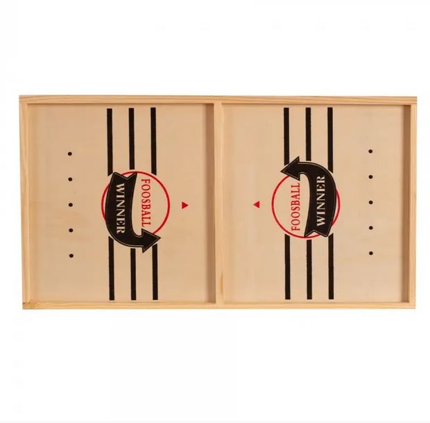 Juego del flick board. Con este juego de lanzar discos al campo contrario se pondrá a prueba la puntería y la coordinación. Apunta, dispara con el lanzador de goma y coloca los discos en el campo contrario. El juego contiene la tabla de juego de madera de medida: 53,5x29x2,5 cm, una bolsa zipper con las fichas (5 de cada color – diámetro: 4 cm) y dos gomas. Ideal para desarrollar la motricidad, concentración, reflejos y puntería.