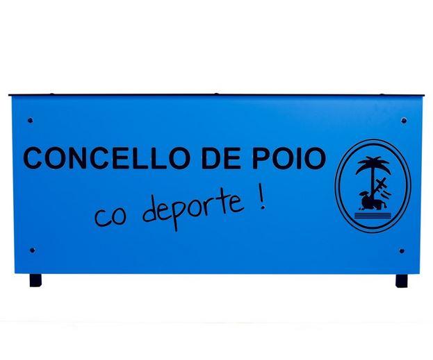 Mesa de anotadores de baloncesto sin laterales, realizada con estructura de acero al carbono con recubrimiento lacado en polvo, acabado negro/plata martele, con paneles fenólicos de 12 mm.