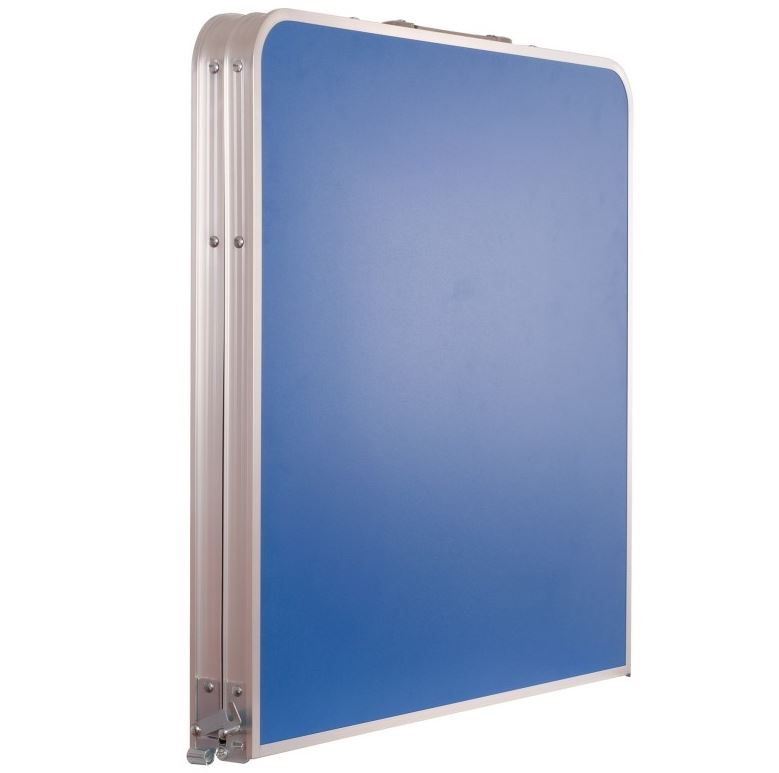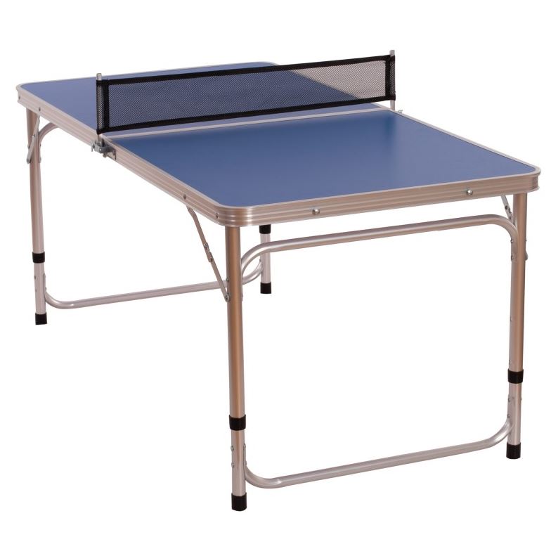 Mini mesa de tenis de mesa plegable fabricada en color azul. La superficie de la mesa está fabricada en MDF y la estructura es de aluminio. Incluye red. Medida de la mesa: 120×60 cm. Dos opciones de altura ya que es regulable: 60,5 cm y 70 cm. Ideal para iniciar a los más pequeños al ping pong . Portátil, llevátela donde quieras. Color: azul/metálica.