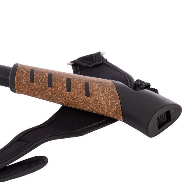 Bastón de marcha nórdica, indicado para tus marchas por la naturaleza. Fabricado en aluminio con empuñadura de corcho. Sistema Anti Shock interior para una mejor amortiguación. Incorpora contera de protección. Regulable en altura a través de segmentos telescópicos. Longitud 135 cm (18-16-14 mm). Dispone de dragonera específica para marcha nórdica. Precio por unidad. Color: negro.