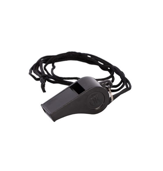 Silbato de plástico estándar con bola. Se sirve con cordón.Medidas: 42x17x15mm. Colores: amarillo, naranja flúor, negro, rojo, amarillo flúor