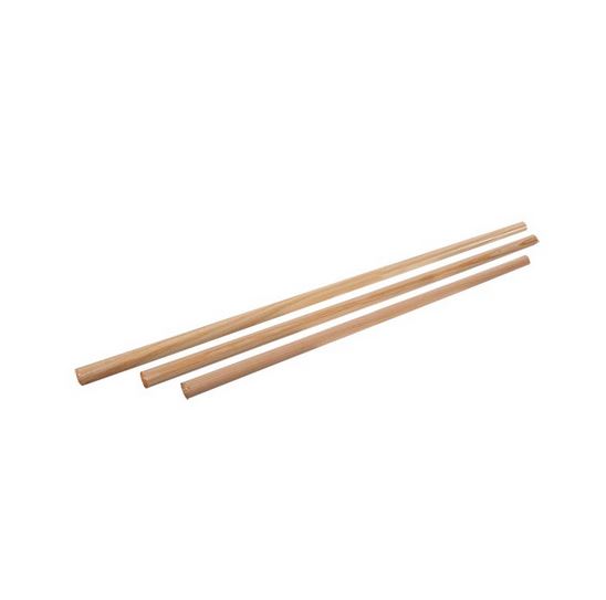 Pica fabricada en madera sin nudos. Diámetro: 2,8 cm. Acabado rústico natural con algunas irregularidades. Disponible en 3 tamaños. Ni enceradas ni barnizadas, rústico natural. Punta redondeada. Color madera.