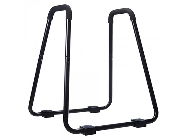 Aparato multifunción para la realización de ejercicios de auto-carga. Muy eficaz en el trabajo de fortalecimiento del tren superior en ejercicios de dominadas inclinadas y fondos. Incluye dos zonas de agarre acolchadas para mejorar dicha zona. Fácil de transportar. Cuenta con un sistema de apoyo de 4 bases con neopreno para evitar el deslizamiento durante el ejercicio.